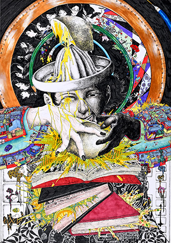 得体の知れない憂鬱な気持ちで町をうろつく若者。人間はつらいことを体験することによって、現実逃避を試みる。夜の街並みを散策しながら心の旅に出る。そして、果物店で一個のレモンを買い求めた。レモンは一個の檸檬爆弾と化し、主人公の憂鬱と町全体を爆破し、主人公の心は落ち着く。主人公の心を黒い服、檸檬の汁が飛び散ることで爆発を表現しました。また月の満ち欠けで何も変わらない人々の人生を描きました。
