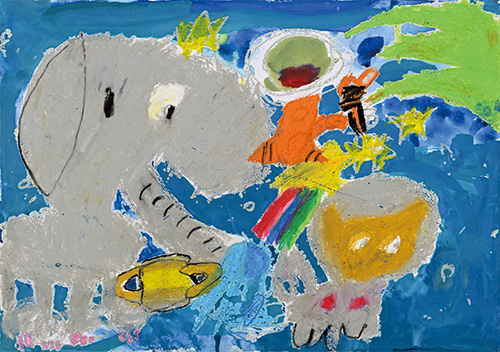 ぼくは、まえにキャンプにいきました。そのときに土せいのはなしをきいてこころにのこっていたのでかきました。上手にかけました。ながれぼしもキャンプのときに見ました。だから、ながれぼしも上手にかけました。